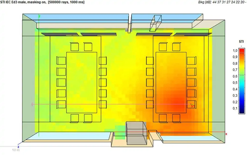 Parametry dźwiękowe tej przegrody były kluczowe zarówno w aspekcie spełnienia wymagań projektowych, jak i praktycznego bezpieczeństwa akustycznego dla przyszłych użytkowników obiektu. Dodatkowo, przebudowa wiązała się z koniecznością ponownego przeanalizowania akustyki wnętrz nowoprojektowanych przestrzeni. Dla wybranych funkcji biurowych, w tym pomieszczeń typu open space, należało uwzględnić wymagania dotyczące czasu pogłosu oraz zrozumiałości mowy, a także dostosować chłonność akustyczną materiałów do charakterystyki przestrzeni. Integracja nowego układu pomieszczeń z istniejącymi oraz projektowanymi przegrodami wymagała podejścia, które pozwoli zminimalizować ryzyka związane z przekroczeniem dopuszczalnych norm i zapewni właściwy komfort pracy w warunkach oddziaływania hałasu lotniczego.