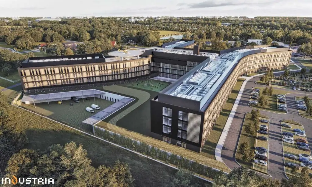 Zaprojektowany przez firmę Industria sp. z o.o. miejski szpital w Gliwicach to nowoczesna placówka medyczna o planowanej powierzchni około 57 000 m². Budynek, zaprojektowany na planie litery „H” z uwzględnieniem praktycznych i innowacyjnych rozwiązań, będzie miał pięć kondygnacji, a na dachu znajdzie się lądowisko dla śmigłowców medycznych. W poszczególnych segmentach szpitala przewidziano 12 oddziałów z miejscami dla 356 pacjentów w pokojach jedno- i dwuosobowych.