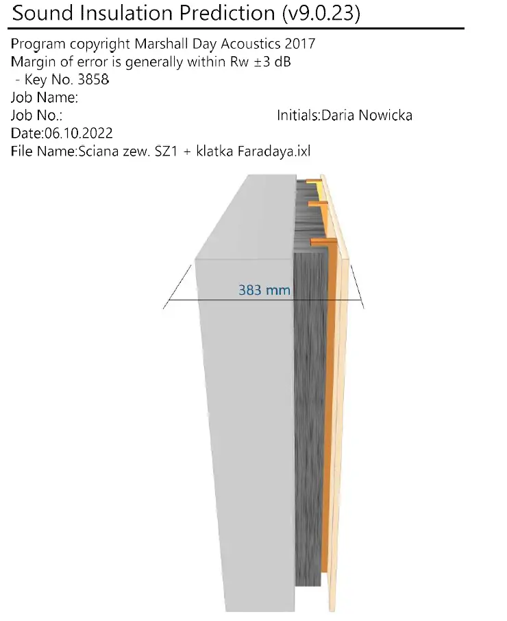 Dobór izolacyjności akustycznej przegród wewnętrznych z uwzględnieniem niestandardowych rozwiązań medycznych, tj. klatka Faradaya, przedścianki w salach operacyjnych i inne specjalistyczne konstrukcje.